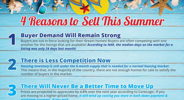 4 Reasons to Sell This Summer [INFOGRAPHIC] 4 Reasons to Sell This Summer [INFOGRAPHIC] 4 Reasons to Sell This Summer [INFOGRAPHIC] 4 Reasons to Sell This Summer [INFOGRAPHIC]Some Highlights:Buyer demand continues ... By Christa Ross|2019-06-29T23:15:25-04:00July 3rd, 2019|Blog Post - Selling|0 Comments Read More